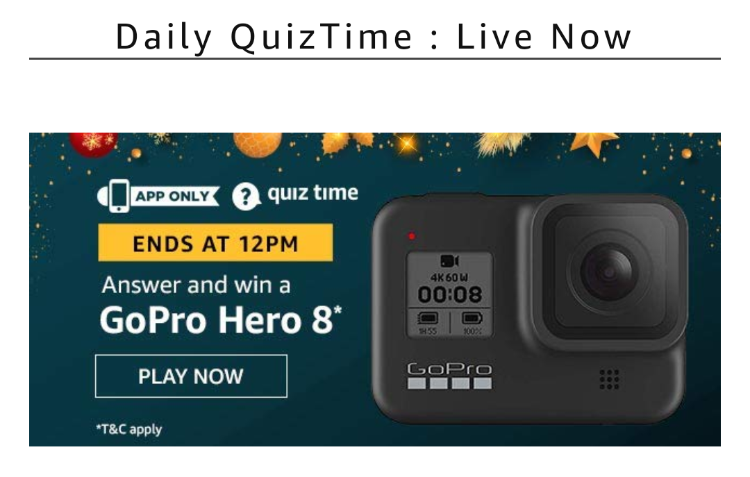 Amazon Quiz Today – 17th January | Today’s Prize: GoPro Hero 8
