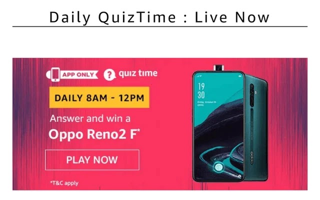 Amazon Quiz 2 February Answer | Win Oppo Reno 2 F
