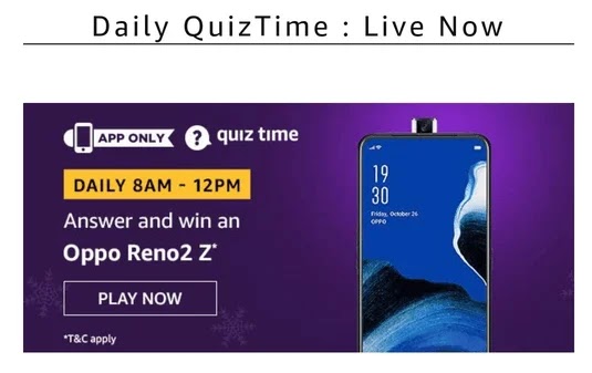 Amazon Quiz Today Answer, Amazon Quiz 9 February, Amazon Quiz 9 February Answer, Amazon Oppo Reno 2 Z Quiz — Here We Are Going to Share All the Answer of Amazon Today’s Quiz. By Participate in Amazon Daily Quiz,