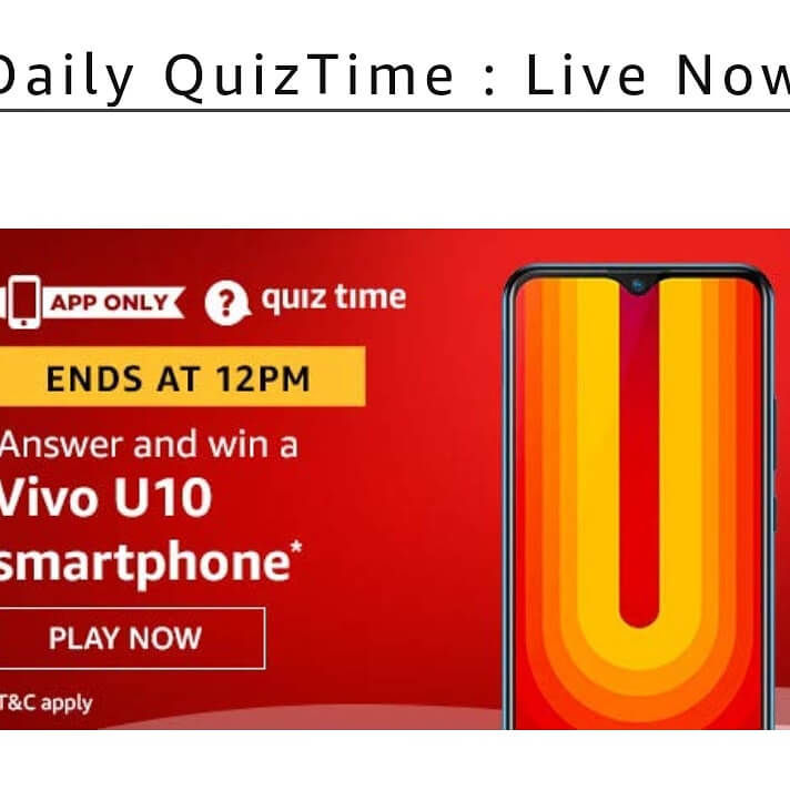 Amazon Quiz Today – 29 DECEMBER | TODAY’S Prizes : Vivo U10 Smartphone