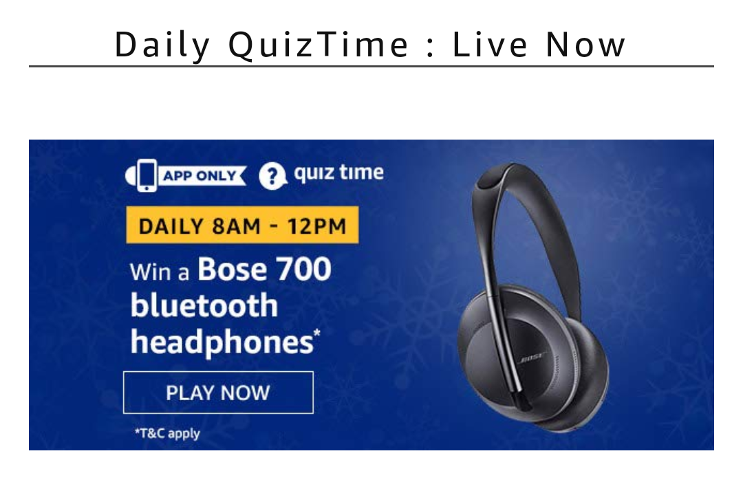 AMAZON QUIZ TODAY – 21 DECEMBER | TODA’S PRIZE – BOSE 700 BLUETOOTH HEADPHONES