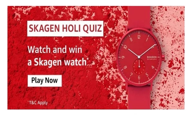 Amazon Skagen Holi Quiz Question & Answer – 7th March | Today’s Prize: Skagen Watch