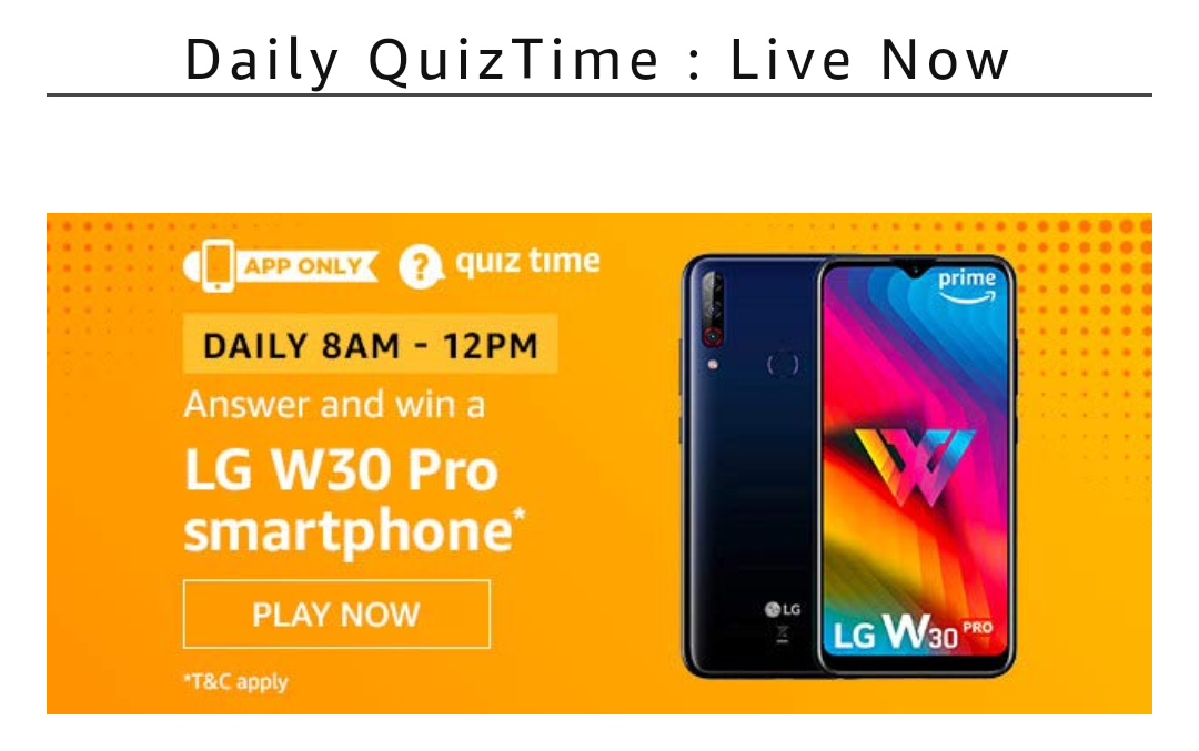 AMAZON TODAY QUIZ – 11 DECEMBER | PRIZE – Win LG W30 Pro Smartphone