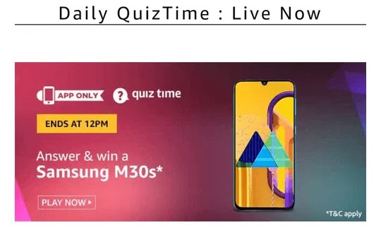 AMAZON TODAY QUIZ – 23rd February | Today’s Prize: Samsung Galaxy M30s