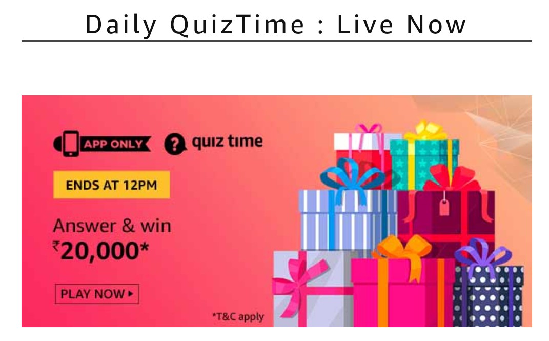 AMAZON TODAY QUIZ – 5 DECEMBER | PRIZE – Rs.20000